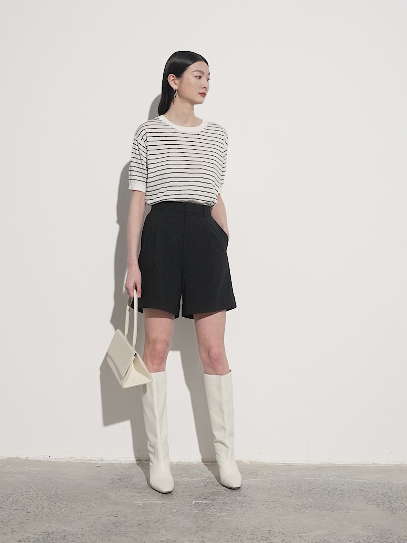 These shorts feature a classic and timeless cut, made with comfortable and durable polyester fabric. The flattering A-line design adds a touch of sophistication while also accentuating the legs. Perfect for achieving a simple yet stylish look.